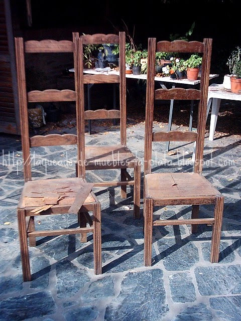 Estas sillas necesitan un ajuste. Hay que re encolarlas, cambiarles la tabla del asiento y re hacerles el trabajo de pintura.