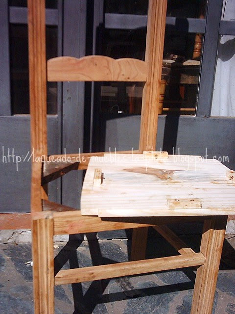 La parte del asiento era de madera terciada, la cual no estaba en buen estado, las cambio por por unas tapas con madera de pino (a pedido del cliente) de 1,5 cm de espesor.