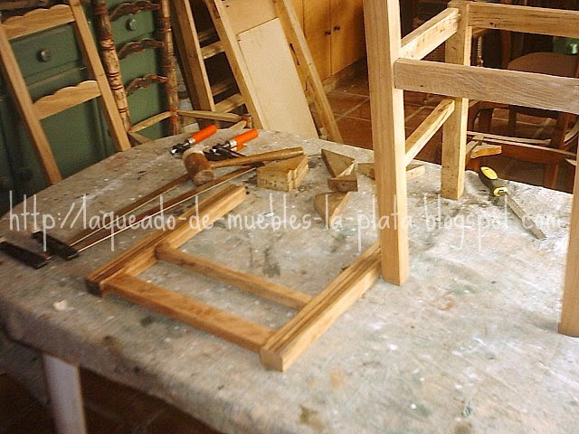 En las fotos puede ver como se unen dos piezas de madera usando tarugos, para el nuevo asiento.