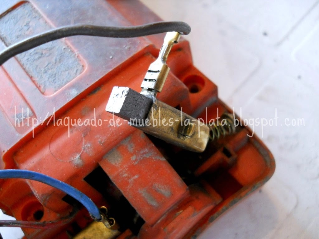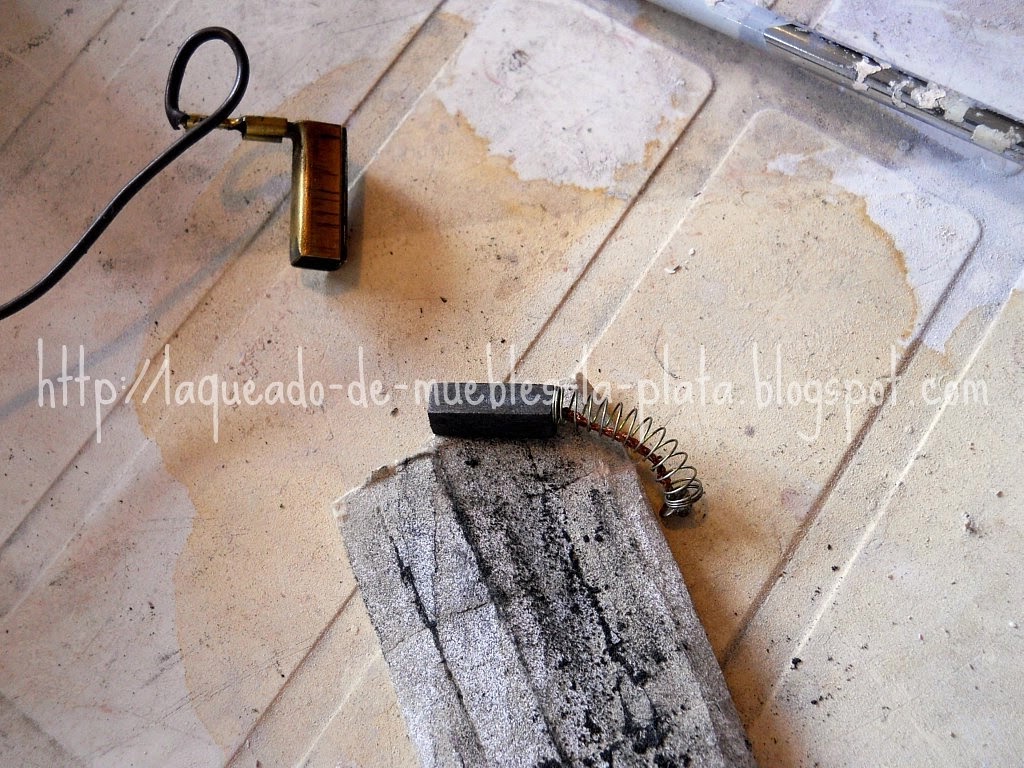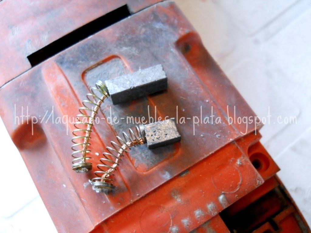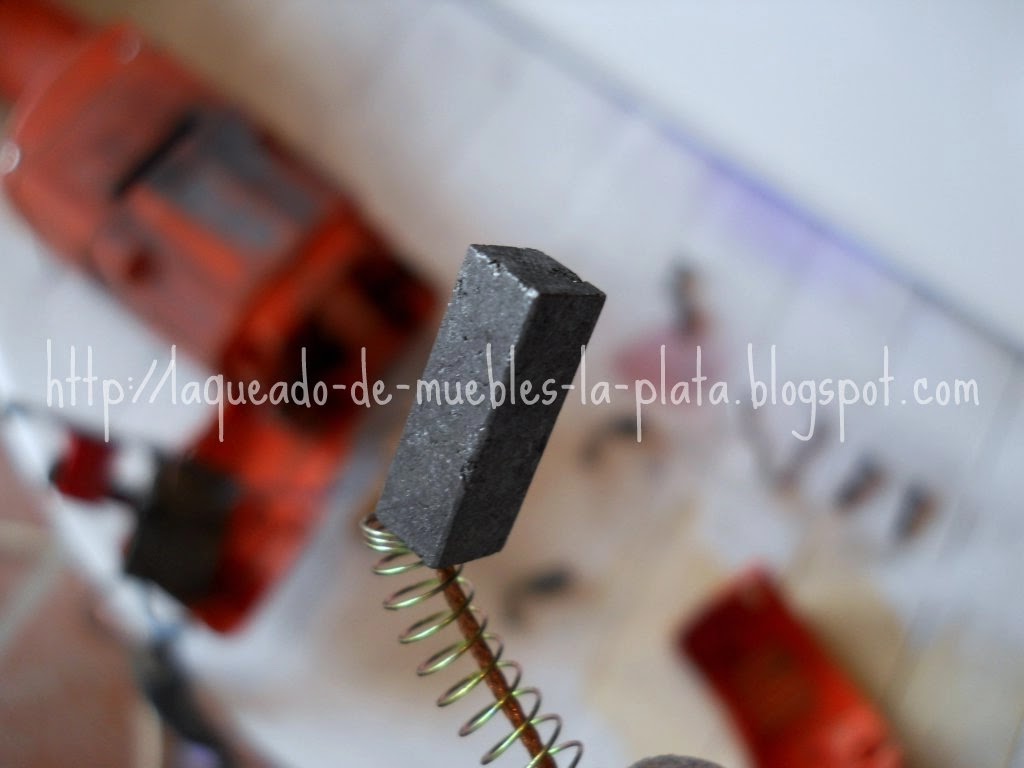Si el espesor de la nueva pieza fuese excesivo lijar suavemente para que esta se pueda deslizar libremente dentro del contacto. En mi caso no pude conseguir los repuestos originales, los carbones, así que compré carbones para taladro y los tuve que lijar un poco para que estén a medida.