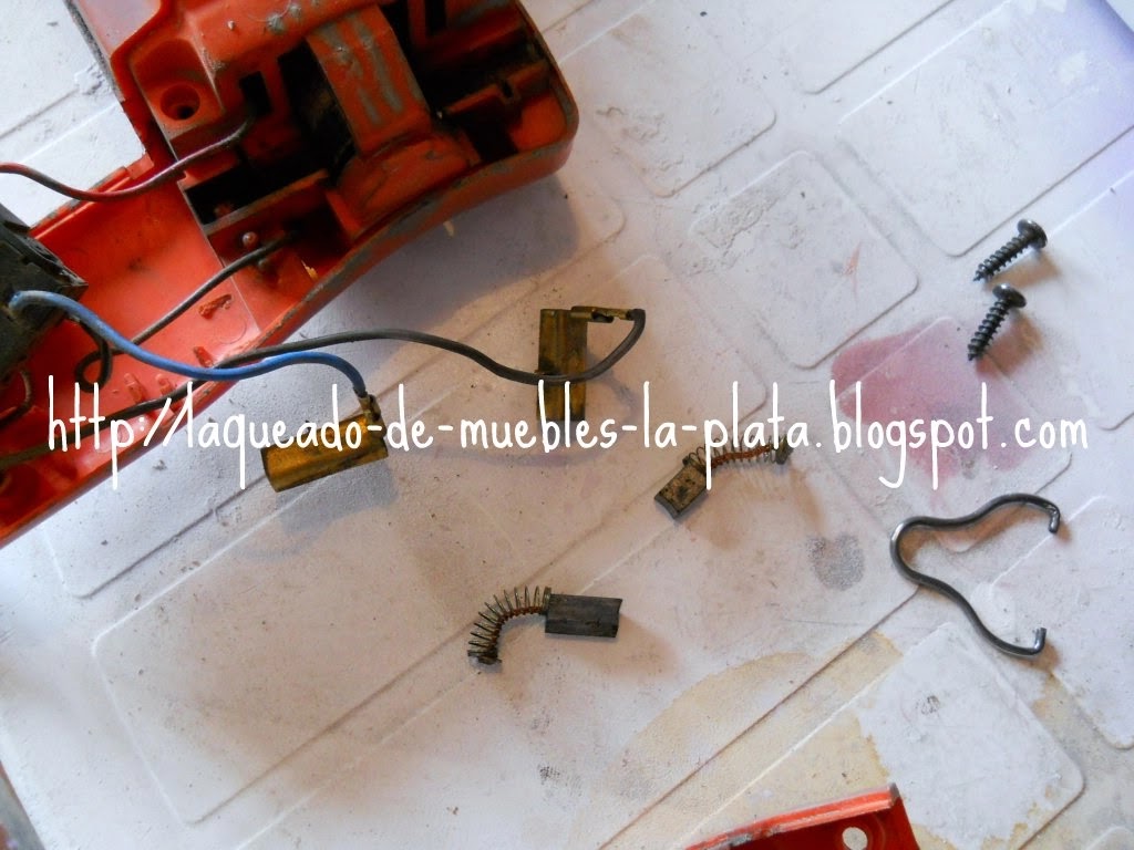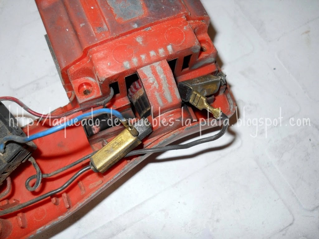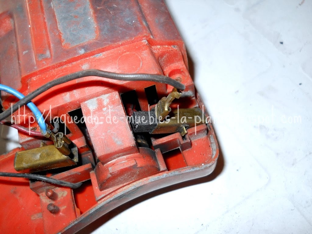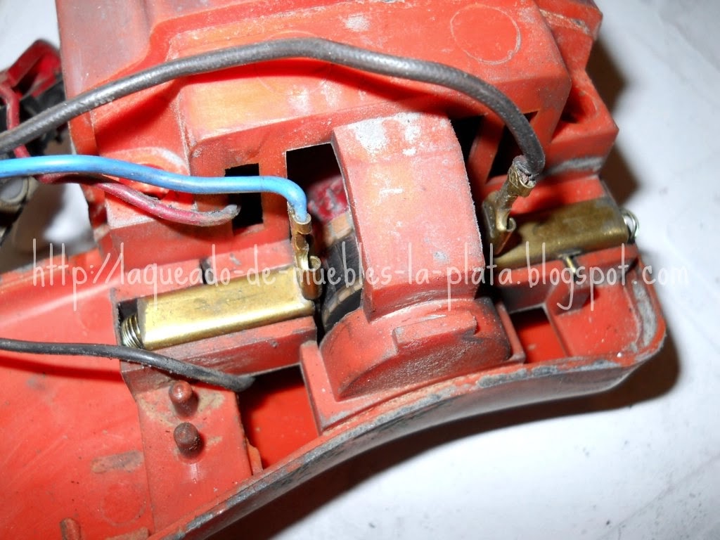 Si el espesor de la nueva pieza fuese excesivo lijar suavemente para que esta se pueda deslizar libremente dentro del contacto. En mi caso no pude conseguir los repuestos originales, los carbones, así que compré carbones para taladro y los tuve que lijar un poco para que estén a medida.