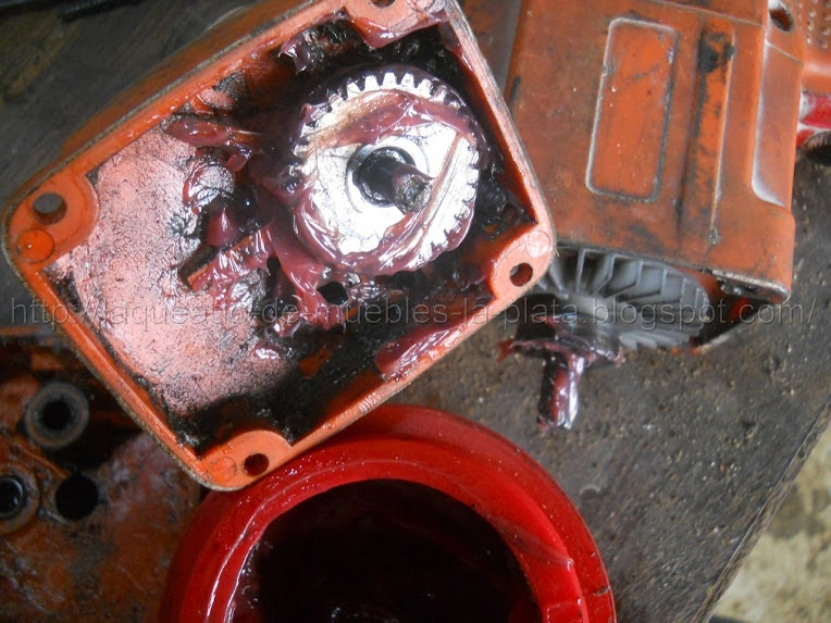 Limpiar la grasa vieja, que pude estropearse por el polvo o por el simple uso. Para esta tarea yo personalmente sumerjo las piezas, los engranajes solamente, en gas-oil por unos minutos, para limpiarlas. Antes de volver a ponerlas en la maquina secar bien. No usar solventes líquidos en la maquina para limpiarla.