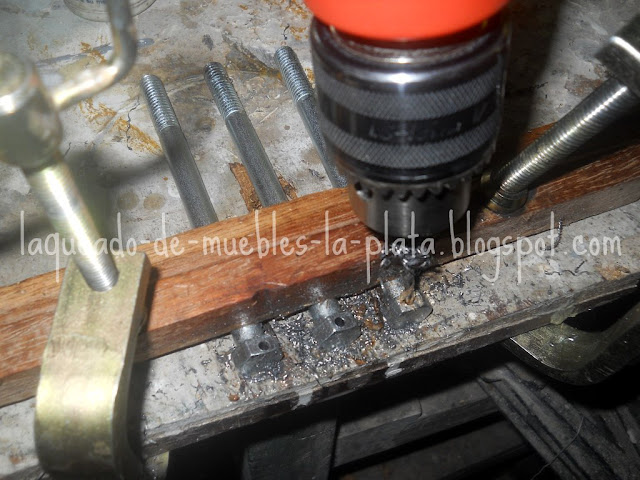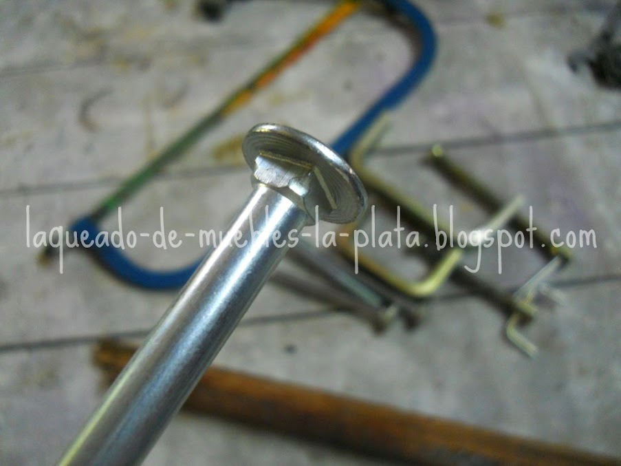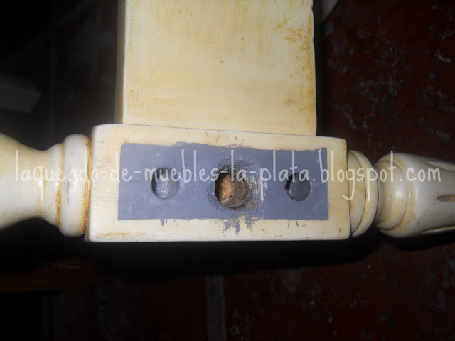 Un problema que encontré durante esta restauración fue el armado de la cama. Faltaban 2 de los 4 tornillos y también los tirafondos que van enroscados en la madera.
