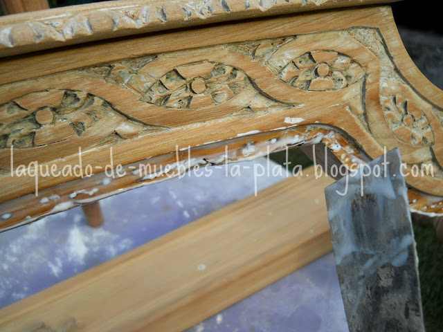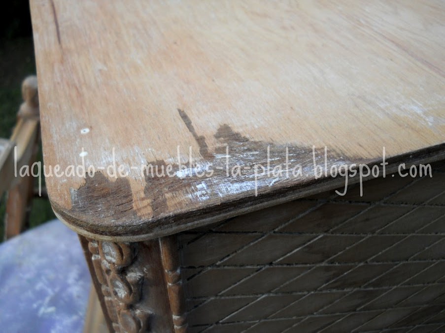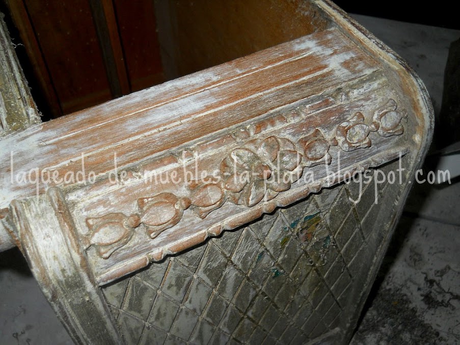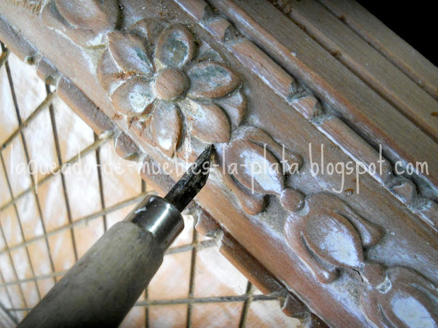 Durante el decapado podemos ir inspeccionando el mueble en busca de detalles para restaurar.