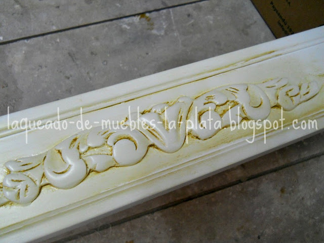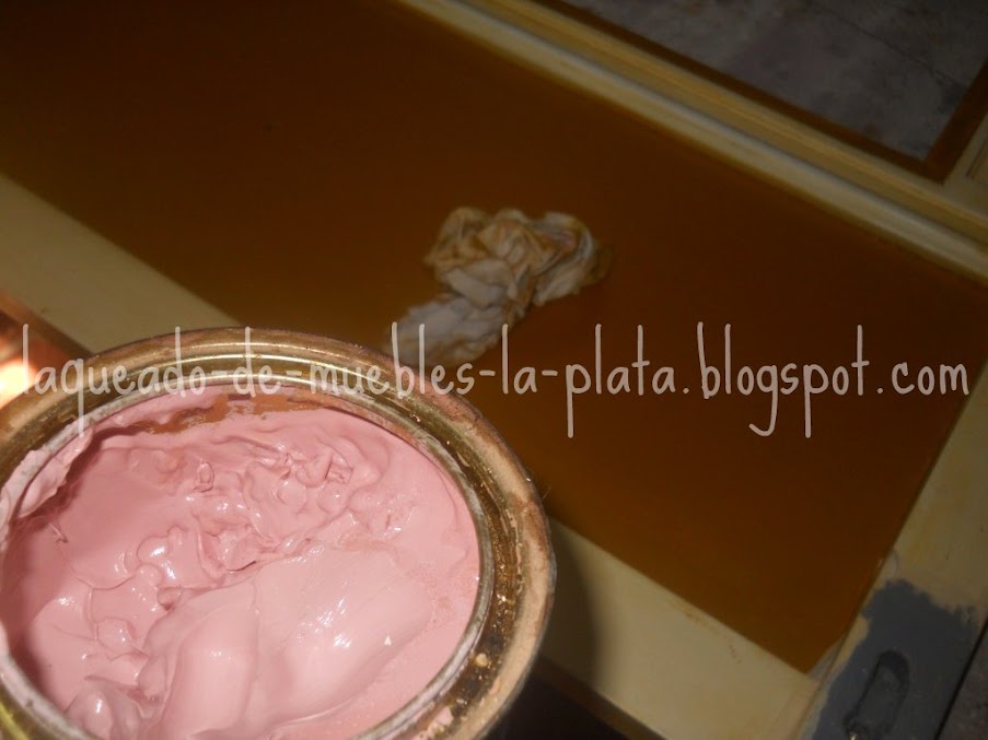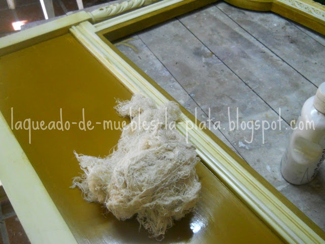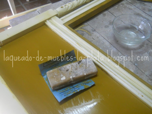 También se pulió otra parte del mueble, pulido a espejo. Para esto utilizar pasta de pulir fina y despues el polish para autos. Es la parte que va abajo de la cabecera, que está en ocre. Me pareció muy rustica para dejarla así, entonces se le hizo un pulido a espejo. Ver pulido.