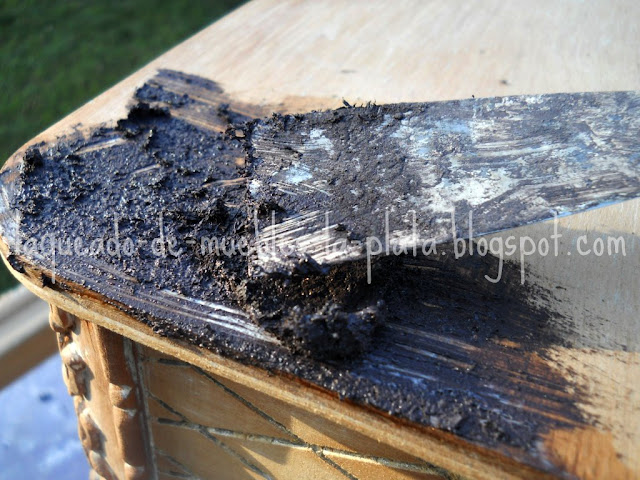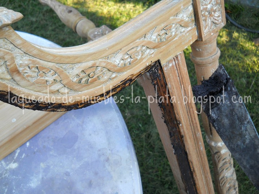 Aplicar removedor en una parte del mueble dejar actuar 1 minuto y raspar con espátula.