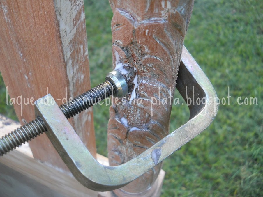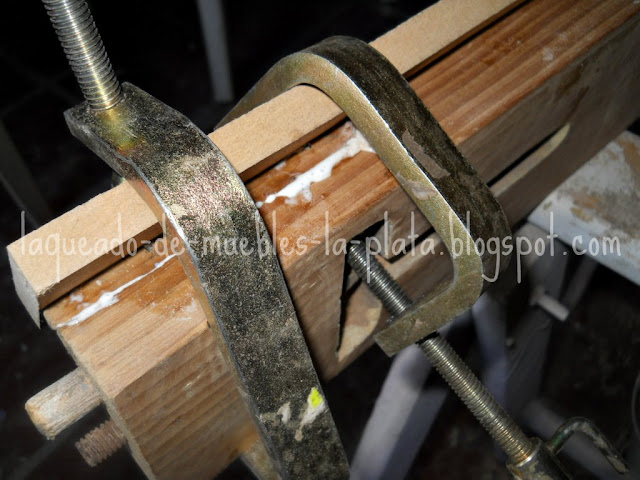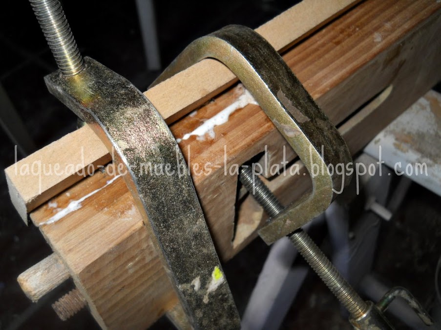 Dejamos secar la masilla y piezas encoladas en el mueble.