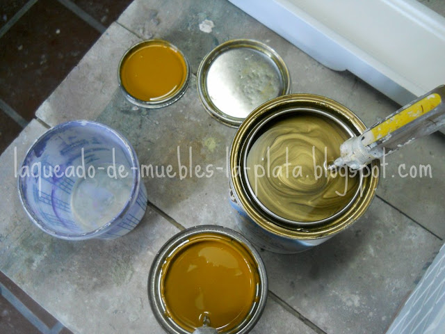 Para la patina usaremos una mezcla de ocre y dorado. Las proporciones varían según el tono que busquemos. En este caso es 90% ocre y