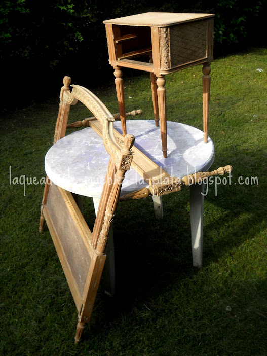 Empecemos con el decapado. Para retirar la pintura de estos muebles fue utilizado removedor gel para lacas y barnices.