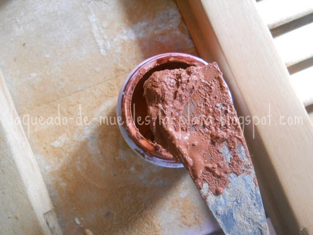 Enmasillar las ultimas imperfecciones (masilla color cedro en este caso).