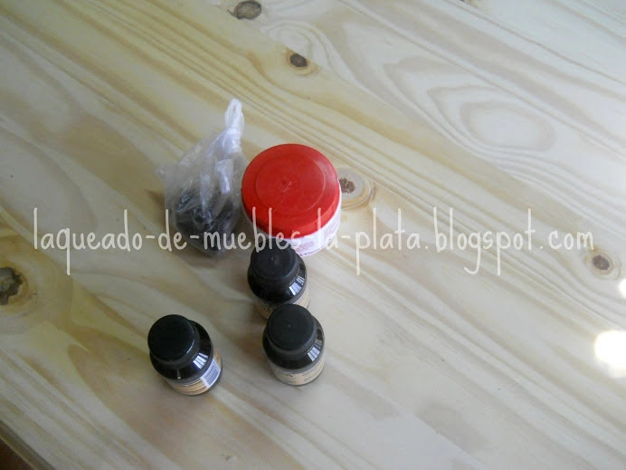 Para este trabajo no usé ningún fondo, sellador o imprimador. Se supone que las lacas acrilicas sirven para aplicar sobre diferentes productos como esmaltes o lacas nitrosintéticas, trabajos bi-capa. Pero preferí no arriesgarme a usar un fondo que luego no valla a ser compatible con la laca y que arruine el trabajo.