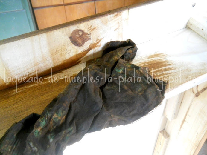 Esparcir uniformemente. para mas información de cómo teñir un mueble ver esta publicación aquí.