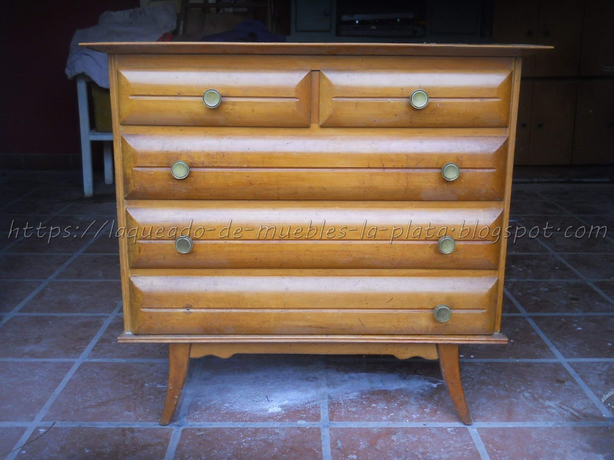 El mueble está impecable, algunas partes sueltas por el uso. Imaginate si pones peso encima sumado a la carga de los cajones obviamente hace palanca, de tal forma si, se encontraron piezas des-encoladas y rotas. Los terciados usualmente no van laqueados aunque si con tratamiento anti-insectos.